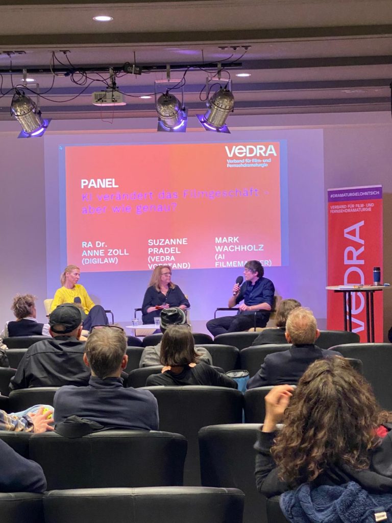 Beim anschließenden VeDRA Panel diskutieren wir die neuesten Entwicklungen und Implikationen auf unsere tägliche Arbeit mit Dr. Anne Zoll (Digilaw) und dem Drehbuchautor und AI Filmemacher Mark Wachholz, moderiert von VeDRA Vorstand Suzanne Pradel.